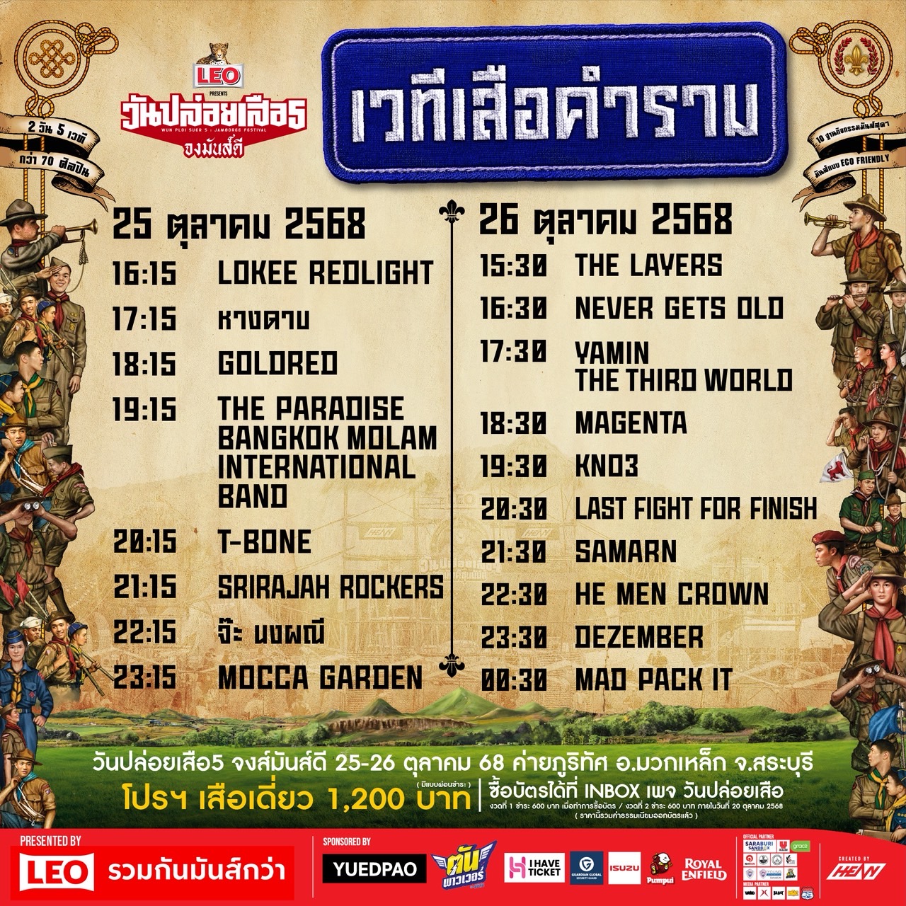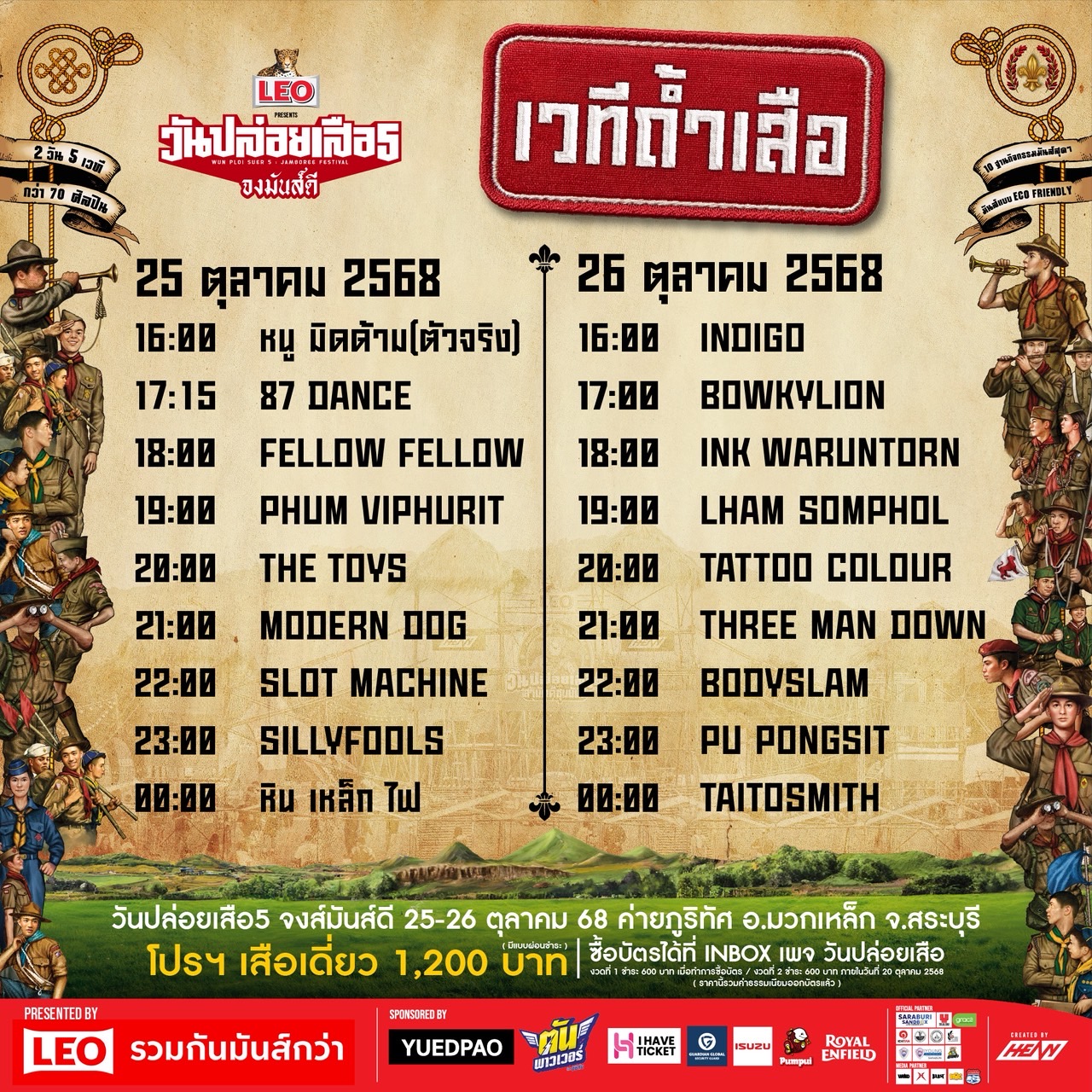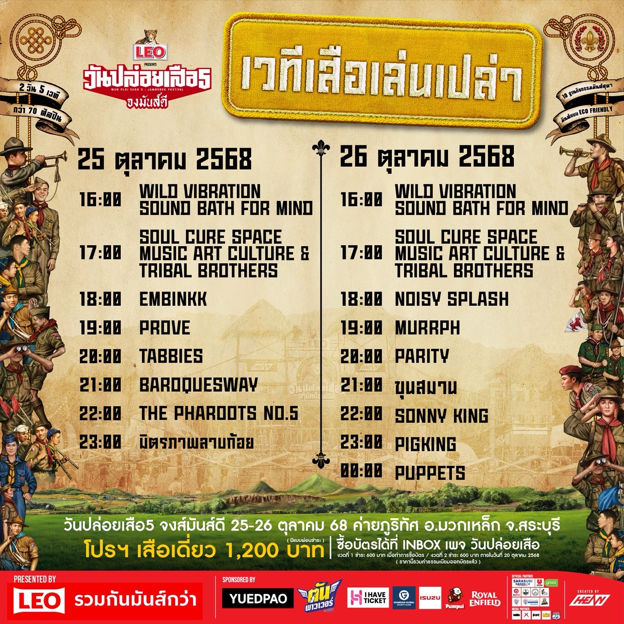 ชาวเสือเตรียมเฮ! สิ้นสุดการรอคอยสำหรับเทศกาลดนตรีสุดยิ่งใหญ่แห่งปี LEO Presents วันปล่อยเสือปี 5 จงมันส์ดี ที่ประกาศตารางโชว์อย่างเป็นทางการแล้ว งานนี้กลับมาพร้อมความยิ่งใหญ่กว่าเดิมบนพื้นที่กว่า 720 ไร่ อัดแน่นด้วยทัพศิลปินกว่า 82 ชีวิต บน 5 เวทีหลักและ 2 เวทีดีเจ ตลอด 2 วันเต็ม ในวันที่ 25–26 ตุลาคม 2568 ณ ค่ายภูริทัศ ต.หนองย่างเสือ อ.มวกเหล็ก จ.สระบุรี