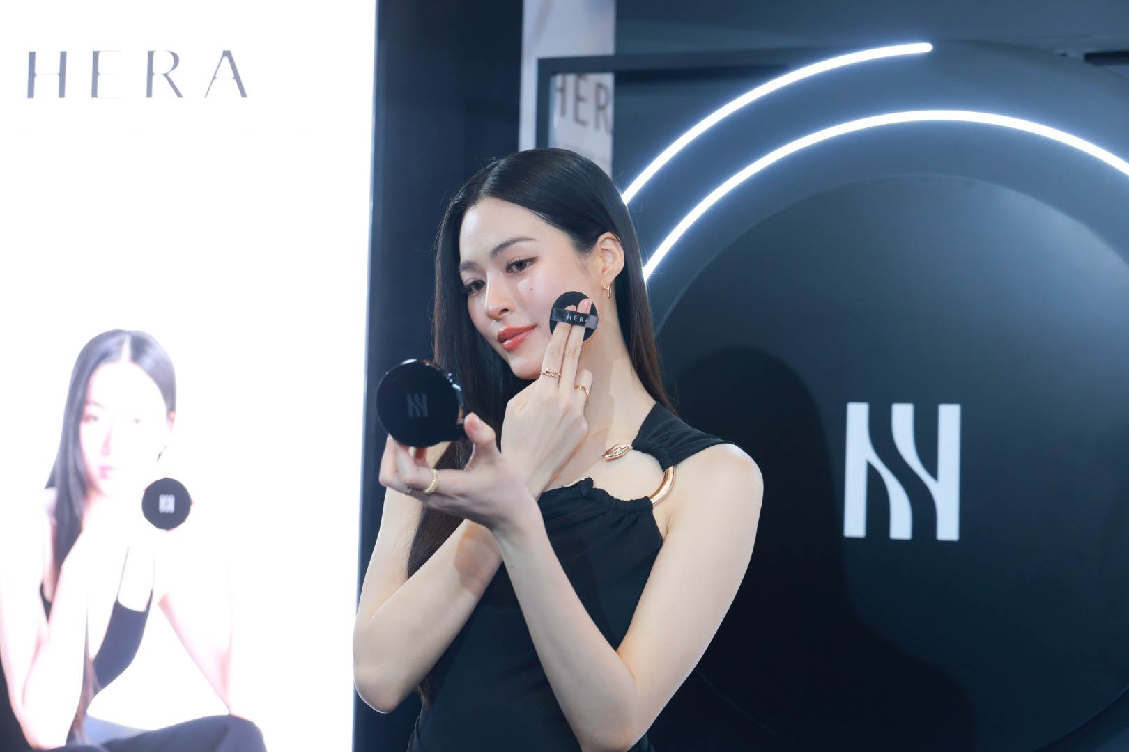 โดยบรรยากาศในงาน “HERA I Can Go Anywhere Pop Up Store” ฉลองครบรอบ 1 ปี HERA ประเทศไทย พร้อมเปิดตัวแบรนด์แอมบาสเดอร์คนแรกของประเทศไทยอย่างเป็นทางการ และแนะนำผลิตภัณฑ์ไฮไลท์ “Black Cushion Foundation” คุชชั่นระดับลักชูรี่ติดทนนานตลอดวัน อันดับหนึ่ง* ในเกาหลี โดยได้เนรมิตลาน Hall of Fame ชั้น M ศูนย์การค้า สยามพารากอน กลายเป็น Pop Up Store ดีไซน์โมเดิร์น เพื่อถ่ายทอดประสบการณ์ความงามแบบฉบับ Contemporary Seoul Beauty ให้เหล่าคนบิวตี้ที่มาร่วมงานได้สัมผัสอย่างเต็มรูปแบบ ก่อนพบกับไฮไลท์เปิดตัว หลิงหลิง แบรนด์แอมบาสเดอร์คนแรกของไทย ที่บอกเลยว่าสมศักดิ์ศรีคนแรกของไทย ออร่าสะกดทุกสายตา มาในลุคสุดเรียบหรูอย่างมีระดับ ด้วยชุดสีดำ ดีไซน์มีเอกลักษณ์ เรียกเสียงปรบมือและเสียงร้องเชียร์ดังไปทั่วทั้งงาน ก่อนที่จะมาร่วมพูดคุยถึงความประทับใจที่ได้รับเกียรติให้เป็น HERA แบรนด์แอมบาสเดอร์ของไทย พร้อมส่งมอบแรงบันดาลใจให้กับแฟนๆ และผู้หญิงทุกคนกล้าแสดงออก และสะท้อนตัวตนและความงามของผู้หญิงในยุคนี้ ที่ไม่ได้จำกัดอยู่แค่รูปแบบเดียว แต่คือการใช้ความงามเป็นเครื่องมือในการบอกเล่าเรื่องราวของตัวเอง