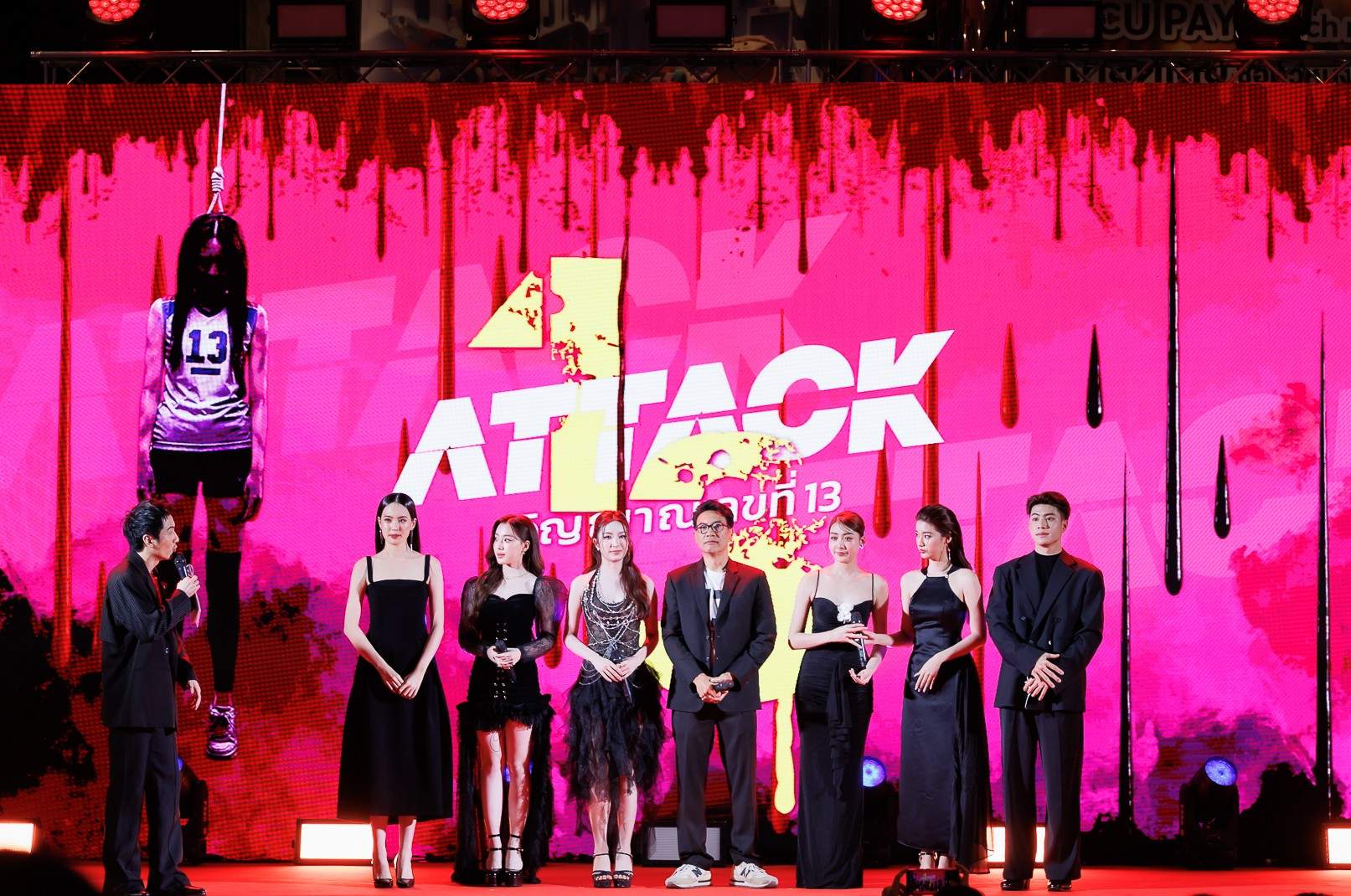 ประเดิมเรื่องแรก “Attack วิญญาณเลขที่ 13” การันตีความระทึกขวัญด้วยฝีมือการกำกับของ คุ้ย-ทวีวัฒน์ ที่หยิบปัญหาการบูลลี่ในโรงเรียนมาใส่ความสยองขวัญสไตล์โอลด์ สคูล จนกลายเป็นความเฮี้ยนแบบนอลสต็อป นำแสดงโดย อ๊ะอาย-กรณิศ เล้าสุบินประเสริฐ, ลิลลี่-ณิชภาลักษณ์ ทองคำ, เพิร์ธ-วีริณฐ์ศรา ตั้งกิจสุวานิช, สตางค์-ตริษา ปรีชาตั้งกิจ,แบงค์ ณฐวัฒน์ ธนทวีประเสริฐ และ ยูแอล-รมิตา รัตนภักดี โดยเปิดให้ชมตัวอย่างแรกให้แขกผู้มีเกียรติและสื่อที่มาร่วมงานได้ชมก่อนใคร พร้อมประกาศวันเข้าฉาย 27 มีนาคมนี้