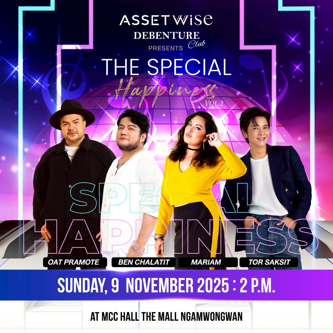 AssetWise Debenture Club จัดคอนเสิร์ตสุดพิเศษเสิร์ฟความสุขให้ผู้ถือหุ้นกู้ สนุกครบรส “โต๋-โอ๊ต-เบน-มาเรียม” แท็กทีมโชว์พลังเสียง 9 พ.ย. นี้