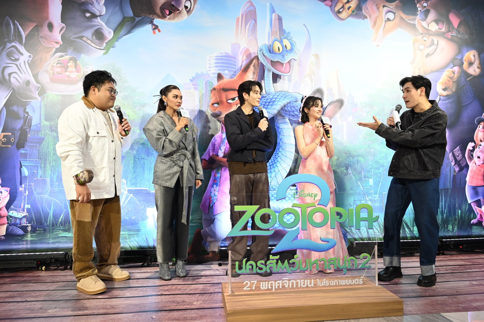 เลอเลย์, ธามไท แพลงศิลป์, หญิง-รฐา โพธิ์งาม, แก้ม-วิชญาณี เปียกลิ่น, โดม-จารุวัฒน์ เชี่ยวอร่าม และ หนุ่ม-สันติสุข พรหมศิริ ที่พร้อมใจกันมาเผยความเป็นแฟนพันธุ์แท้และแชร์ความประทับใจใน Zootopia พร้อมเล่าความสนุกที่จะได้เห็นกันในภาคนี้ แต่ที่สร้างความลุ้นนิด ๆ เพิ่มความตื่นเต้นเบา ๆ ให้กับแฟน ๆ คือความลับที่ยังไม่มีใครเปิดเผยว่าแต่ละคนพากย์เป็นตัวละครไหน อยากให้ไปค้นหาคำตอบและเซอร์ไพรส์พร้อมกันในโรงภาพยนตร์ 27 พฤศจิกายนนี้