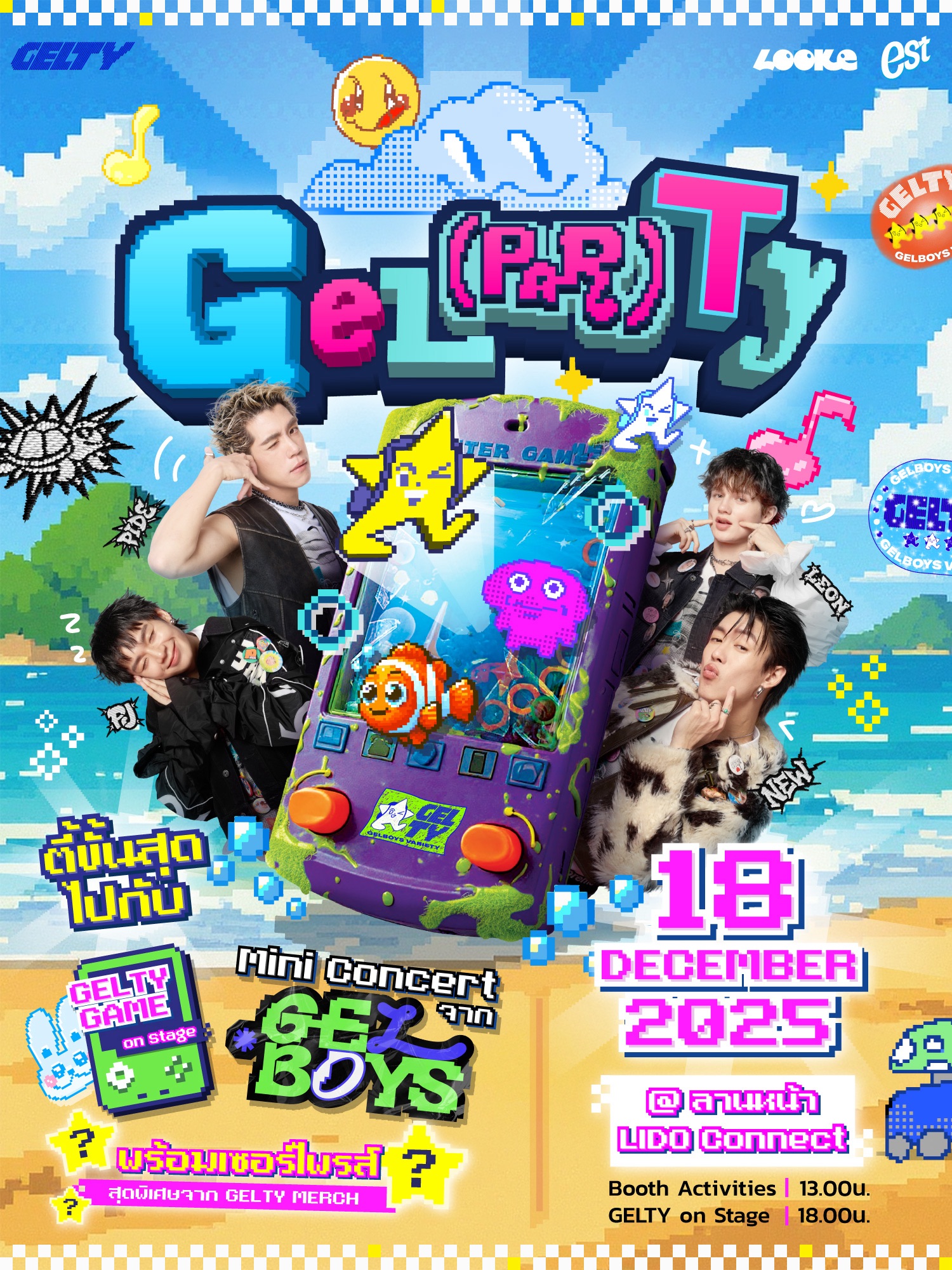 เตรียมม่วนจอยแบบเต็มแม็กซ์ กับคอนเทนต์สุดพิเศษ ไม่ว่าจะเป็น Mini Concert จาก GELBOYS , กิจกรรมมัน ๆ จากบูท est พร้อมรับความฮาบนเวทีจาก GELTY Game on Stage และไอเทมพิเศษจาก GELTY MERCH ที่เเฟน ๆ ห้ามพลาด!