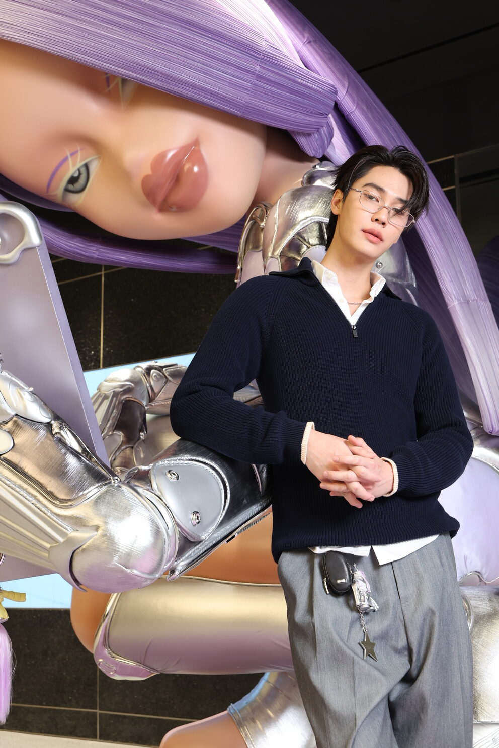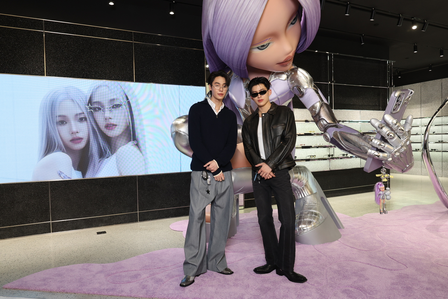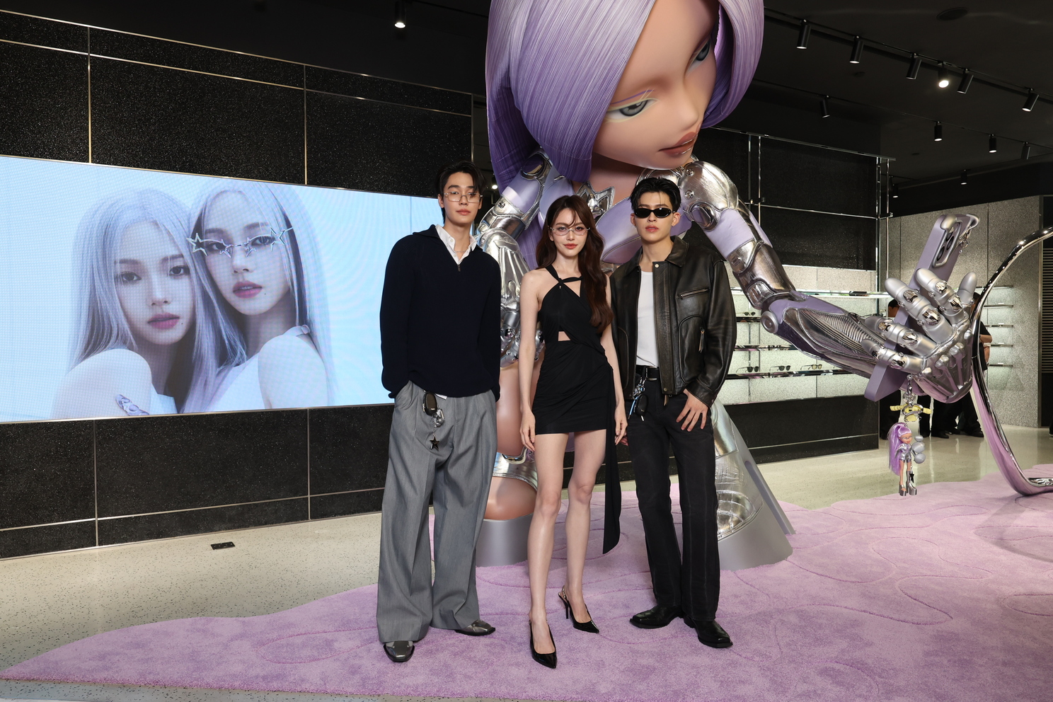 โดยงานนี้สาว ใหม่-ดาวิกา มาในลุคชุดเดรสสั้นสีดำเข้ารูป พร้อมพกเจ้าตุ๊กตา BRATZ เพิ่มความเก๋ แมทช์คู่กับ 2025 Pocket Collection รุ่น Pico-02(V) จากการคอลแลปส์ร่วมรังสรรค์ดีไซน์สุดพิเศษครั้งแรกกับ BRATZ® ที่ไม่เคยมีที่ไหนมาก่อน ! โดดเด่นด้วยเลนส์สีม่วงดีไซน์สุดเก๋ และ 2025 Pocket Collection รุ่น Lolang-T2 แว่นกันแดดดีไซน์ยูนิเซ็กส์ เพิ่มความโฉบเฉี่ยวให้กับลุคนี้ ส่วนหนุ่มดิว – จิรวรรตน์ มาในลุคเรียบง่าย แต่เพิ่มลูกเล่นด้วย 2025 Pocket Collection รุ่น Takion-01 กรอบแว่นสายตา เพิ่มความเก๋ให้กับลุค และไม่ลืมที่จะหยิบแว่นกันแดด รุ่น Matiny-01 มาช่วยสลับให้ลุคนี้ ดูเนี้ยบและเรียบหรูอีกด้วย ด้านหนุ่ม ปอนด์ – ณราวิชญ์ มาในลุคออลแบล็คสุดเท่กับแว่นตา รุ่น Orbit-01 และ Lolang-01 ดีไซน์คลาสสิก กรอบสีดำ แมทช์กับแจ็คเก็ตหนังสีดำที่ทำให้ปอนด์ดูคูลขึ้นไปอีกสเต็ปต์ โดยทั้ง 2 หนุ่ม ไม่พลาดที่จะห้อยพวงกุญแจชุดตุ๊กตา ซึ่งเป็นกิมมิคเท่ ๆ จาก 2025 Pocket Collection