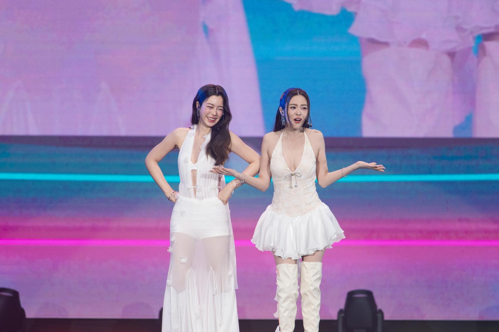 ต่อด้วยพาร์ทเดี่ยวของหลิงที่ขึ้นมาสะบัดขนนกในเพลง “สาวอีสานรอรัก” สมการรอคอยกับภาพที่ไม่เคยเห็นมาก่อนทำเอาแฟน ๆ ลุกขึ้นเต้นไม่รู้ตัว และมาโบกผ้าต่อกับเพลง “ผ้าเช็ดหน้า” เป็นโชว์ที่ทำทุกคนถึงกับร้องว้าวกับสกิลการเต้นที่เจ้าตัวจัดเต็มแบบจึ้ง ก่อนจะต่อด้วยโชว์สุดอบอุ่นกับ “INK WARUNTORN” ที่ร่วมร้องเพลง “สายตาหลอกกันไม่ได้” ในเวอร์ชันพิเศษ ก่อนจะลาเวทีไปพร้อมกับเสียงหวาน ๆ ในเพลง “พบรัก” ด้านออมก็ไม่แพ้กันเปิดมาด้วยเพลง “ละลาย” ก่อนจะตามมาด้วยเพลง “สตอเบอรี่มรกต” ที่สร้างตำนานและกลายกระแสดังไปทั่วโลกโซเชียล เขย่าเวทีต่อกับ NUNEW (นุนิว ชวรินทร์) ที่มาร่วมสร้างโมเมนต์หวานละลายใจในเพลง “รักแท้ยังไง” ก่อนนุนิวจะต่อเวทีด้วยเพลง “จนนิรันดร์” เรียกเสียงกรี๊ดไปอย่างล้นหลาม และที่พิเศษสุดคือการรวมตัวของนักแสดงแซฟฟิกจากช่อง 3 ได้แก่ “ลีน่า -หมิว”, “แทน – ญดา”, “อุ้ม – แบม” ที่ขึ้นโชว์เพลง “แฟนจ๋า” และ “Hot2Hot” แบบสุดมันส์ เป็นโมเมนต์รวมพลังแห่งมิตรภาพที่ทั้งสนุกทั้งอบอุ่นและฮ็อบกันจนกรามจะแตก มาพักหยุดหายใจหายคอกับช่วง “Cam Challenge” ที่เล่นกับแฟน ๆ แบบเรียลไทม์ทั้งในฮอลล์และสายออนไลน์ งานนี้เสียงหัวเราะดังลั่นเพราะท่าทางมุ้งมิ้งและช็อตเขินไม่เว้นวรรค