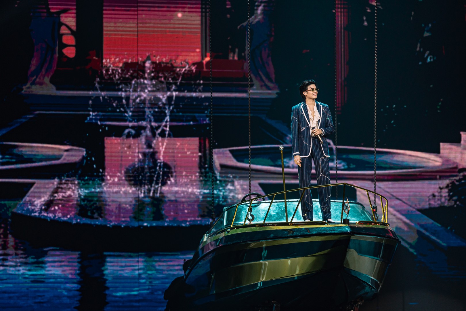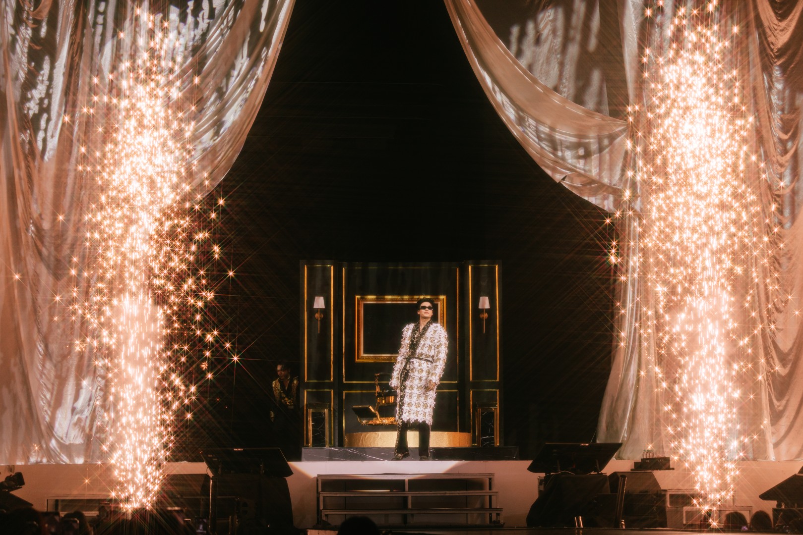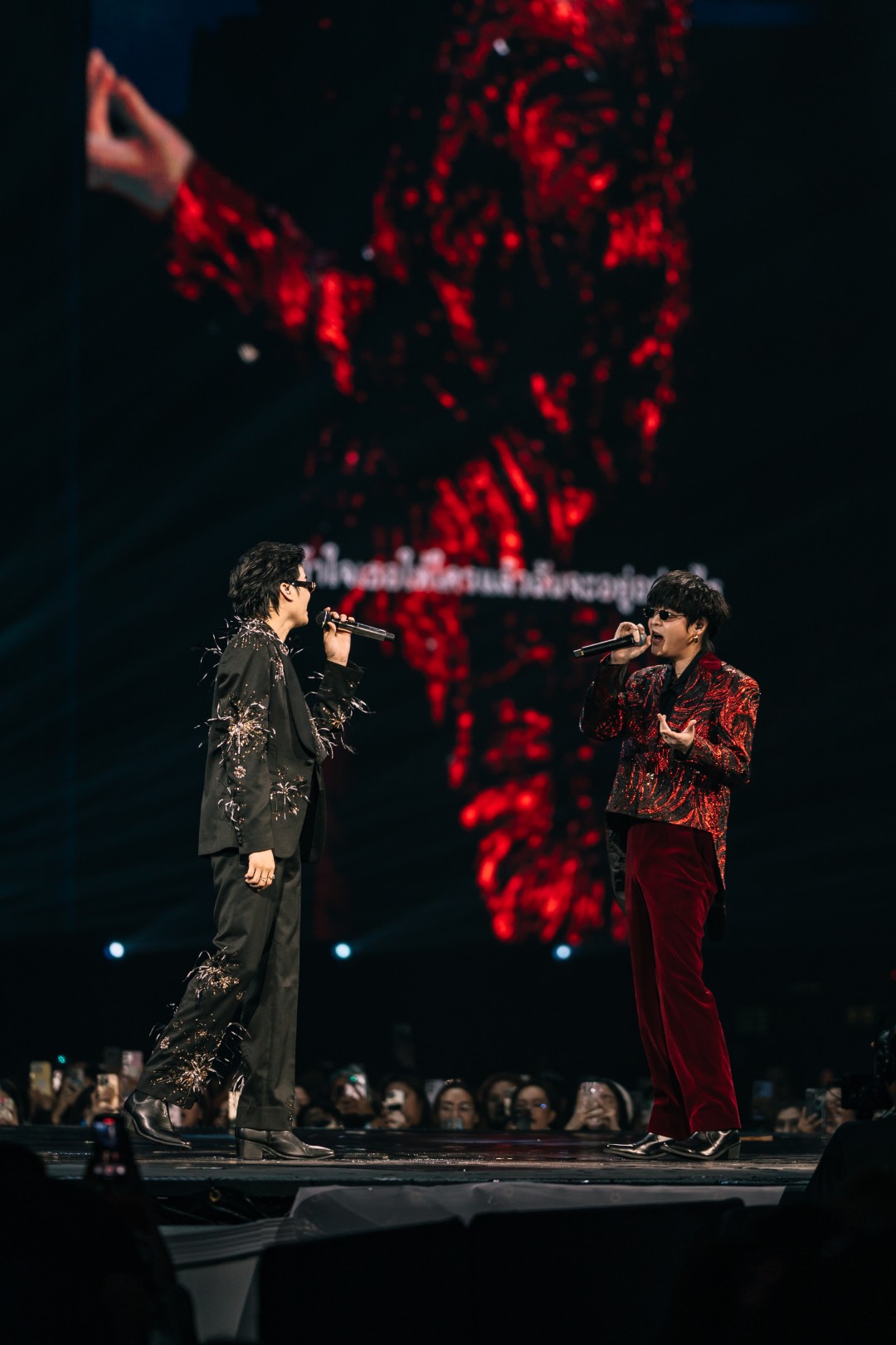 ต่อด้วย “กำลังจะ” ที่จัดเต็มบนเวทีหมุน 360 องศา สร้างพลังไม่หยุด ก่อนเปลี่ยนฉากเป็นบันไดหรูใต้แชนเดอเลียร์กับเพลง “จำนน” แล้วเข้าสู่ห้องนั่งเล่นแสนอบอุ่นกับเมดเลย์จากยุค LOVEiS อาทิ “เธอมีคนเดียวบนโลก”, “ถ้าเธอไม่อยากโชคร้าย”, “คนใหม่”, “Dark Choc”, “Memories”, “Back to you”, “น้อยใจ”, “คบแล้วห้ามเลิก”, “ผ้าพันแผล” และ “Not Romantic” ที่ทั้งฮอลล์ร้องตามกันดังสนั่น