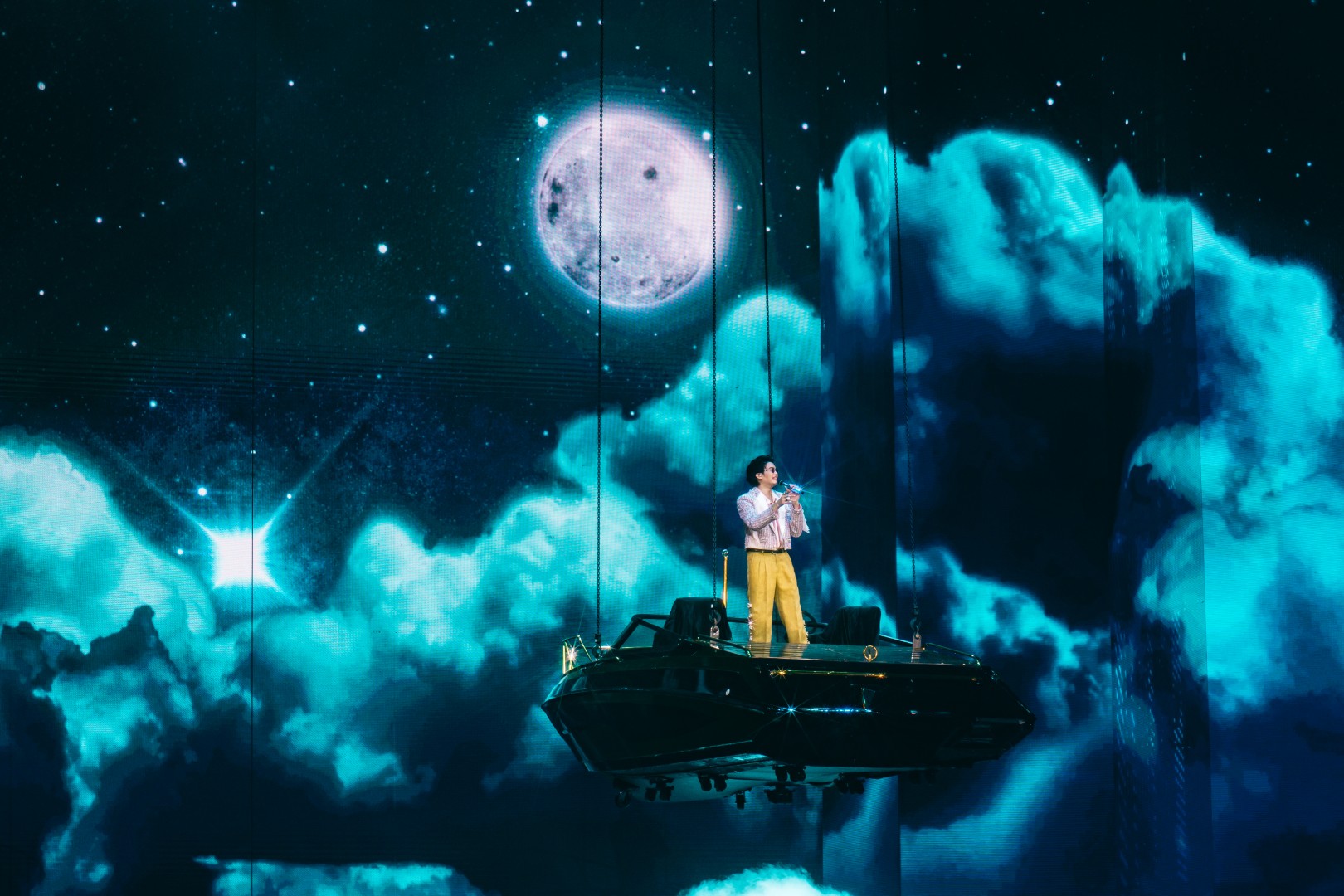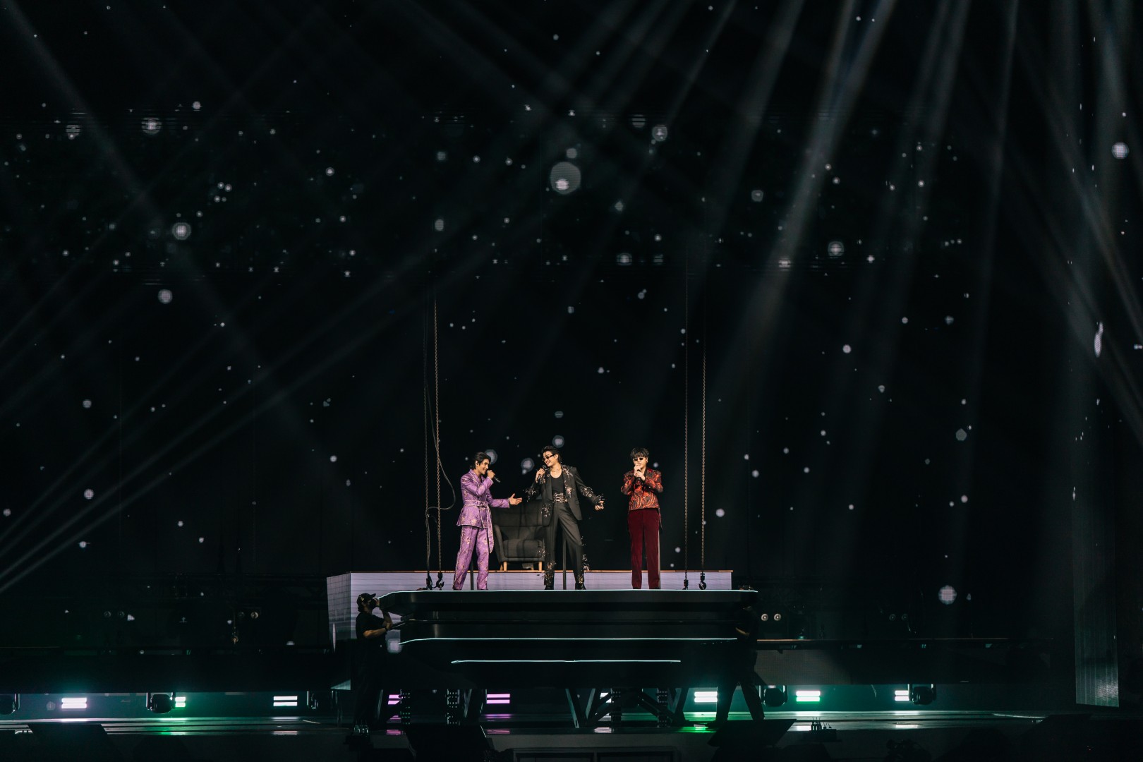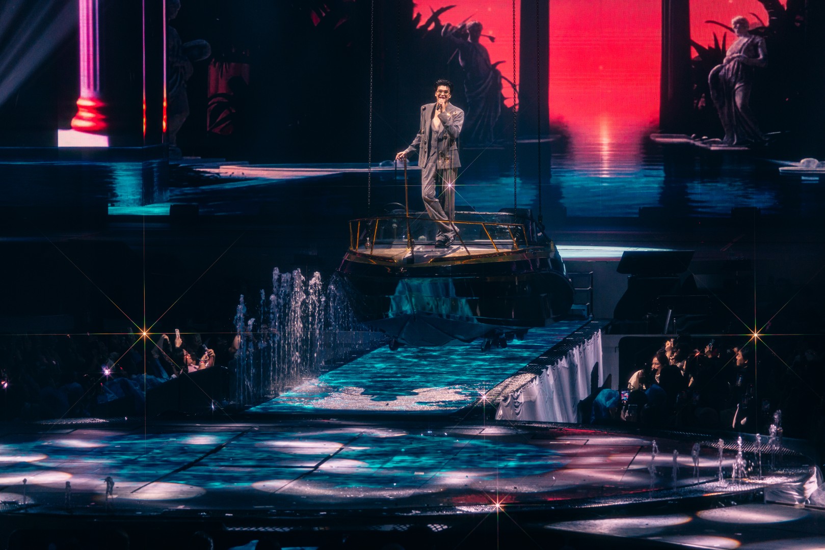 ต่อด้วย “กำลังจะ” ที่จัดเต็มบนเวทีหมุน 360 องศา สร้างพลังไม่หยุด ก่อนเปลี่ยนฉากเป็นบันไดหรูใต้แชนเดอเลียร์กับเพลง “จำนน” แล้วเข้าสู่ห้องนั่งเล่นแสนอบอุ่นกับเมดเลย์จากยุค LOVEiS อาทิ “เธอมีคนเดียวบนโลก”, “ถ้าเธอไม่อยากโชคร้าย”, “คนใหม่”, “Dark Choc”, “Memories”, “Back to you”, “น้อยใจ”, “คบแล้วห้ามเลิก”, “ผ้าพันแผล” และ “Not Romantic” ที่ทั้งฮอลล์ร้องตามกันดังสนั่น