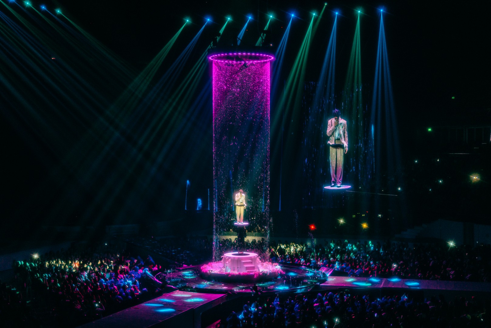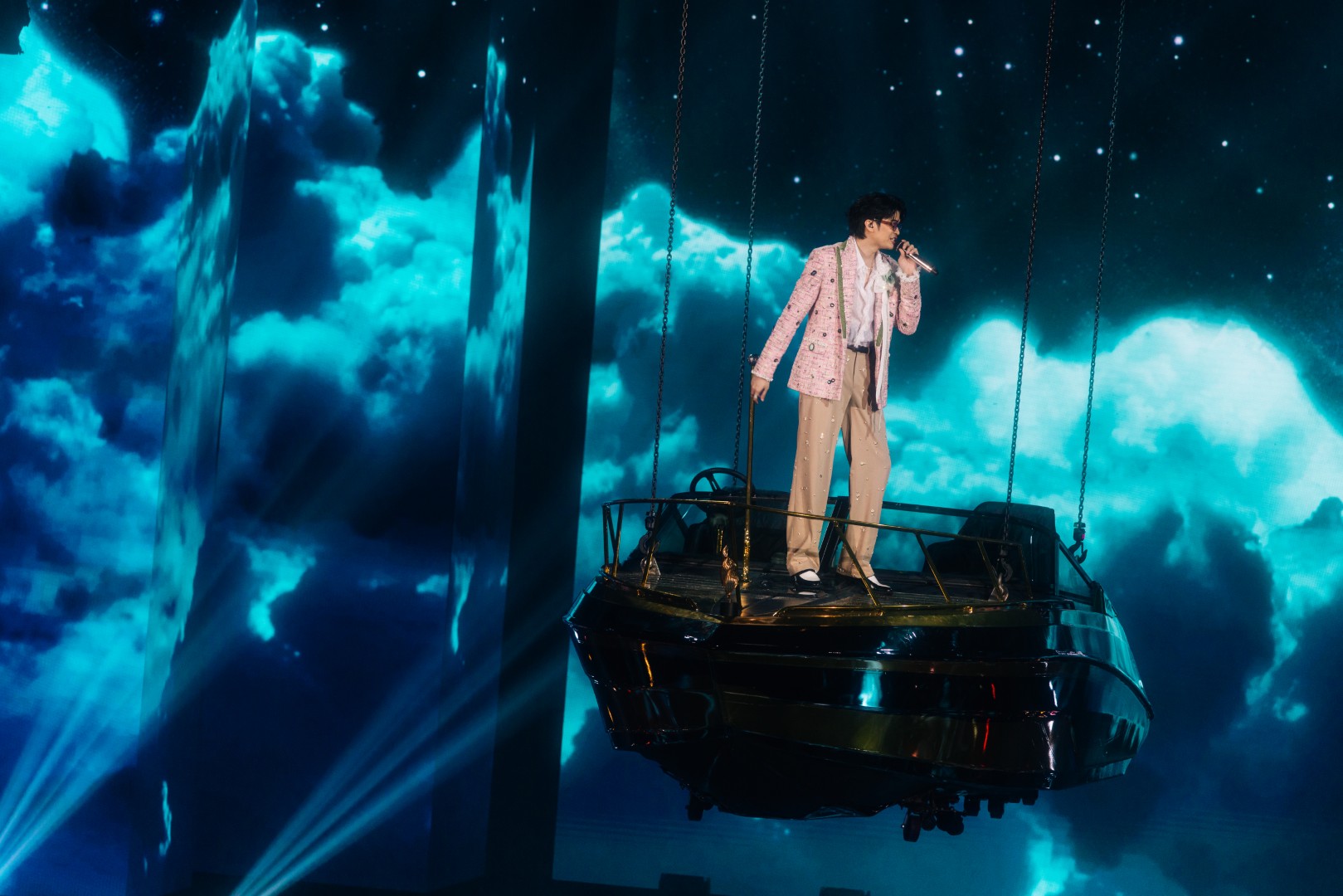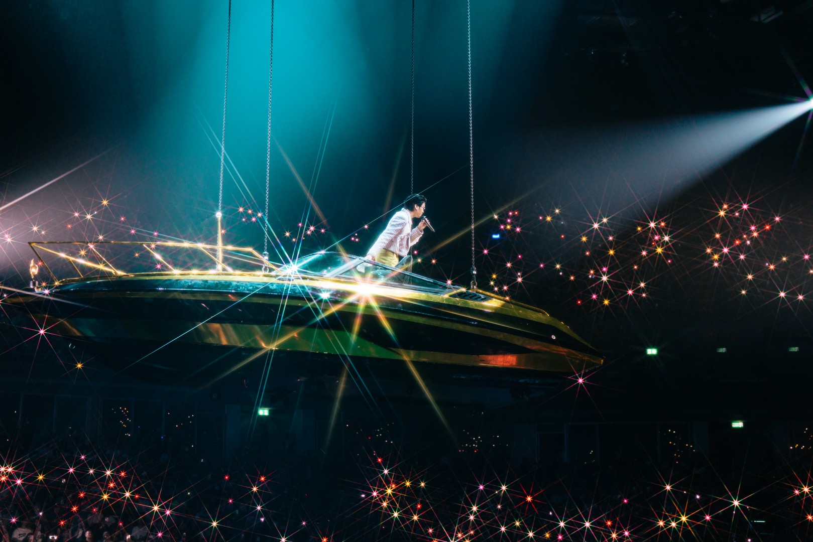 ต่อด้วย “กำลังจะ” ที่จัดเต็มบนเวทีหมุน 360 องศา สร้างพลังไม่หยุด ก่อนเปลี่ยนฉากเป็นบันไดหรูใต้แชนเดอเลียร์กับเพลง “จำนน” แล้วเข้าสู่ห้องนั่งเล่นแสนอบอุ่นกับเมดเลย์จากยุค LOVEiS อาทิ “เธอมีคนเดียวบนโลก”, “ถ้าเธอไม่อยากโชคร้าย”, “คนใหม่”, “Dark Choc”, “Memories”, “Back to you”, “น้อยใจ”, “คบแล้วห้ามเลิก”, “ผ้าพันแผล” และ “Not Romantic” ที่ทั้งฮอลล์ร้องตามกันดังสนั่น