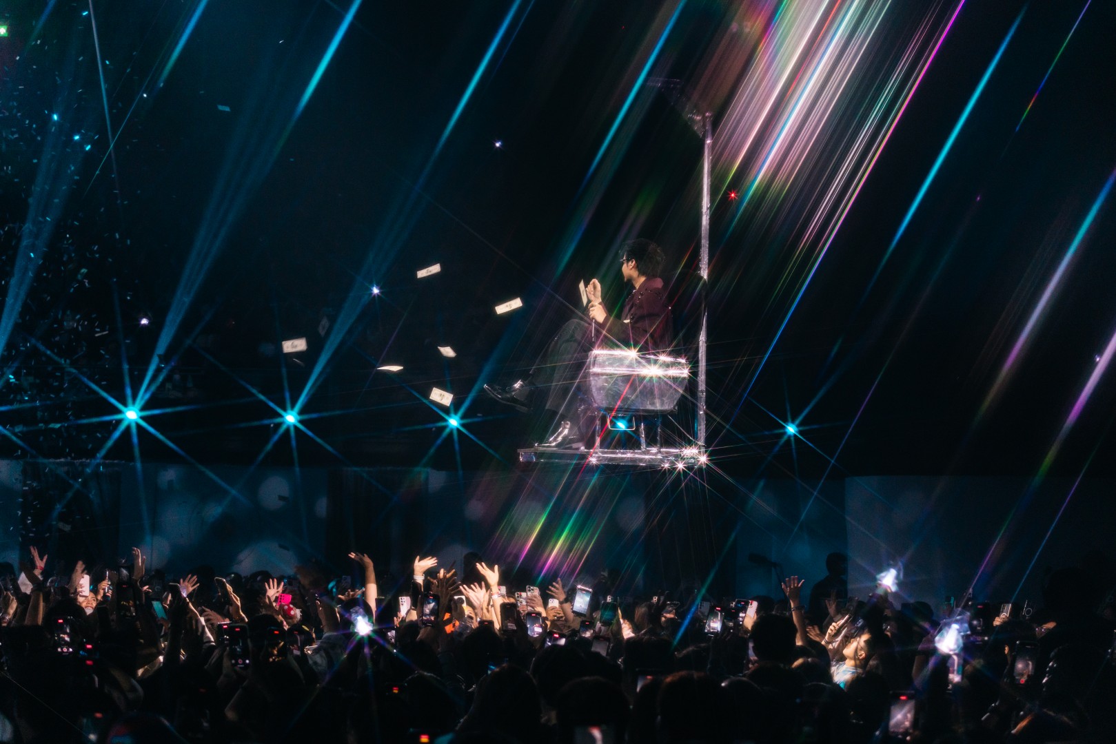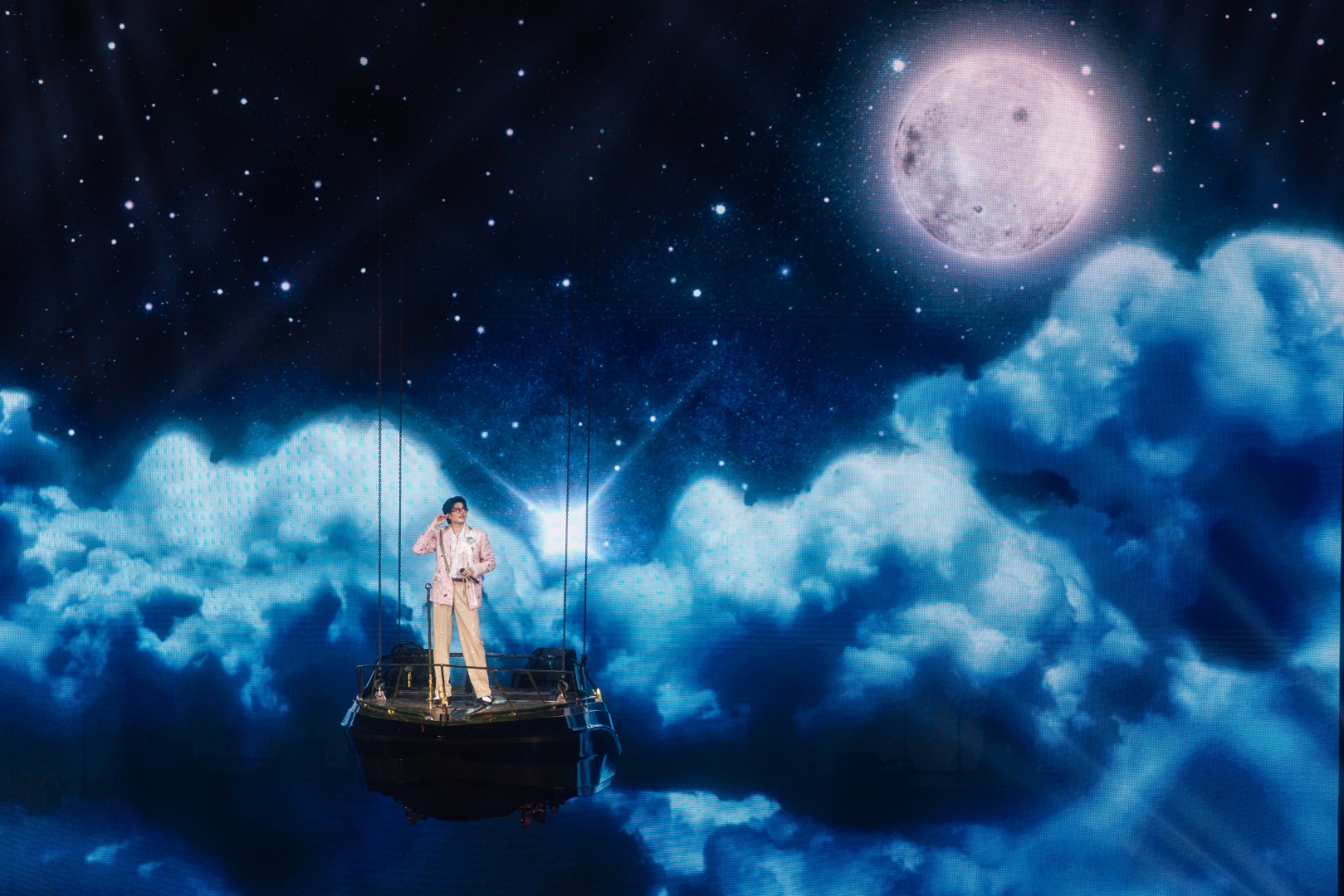 จากนั้นเข้าสู่เพลง “หมื่นคำลา”, “จดหมายรักจากเมียเช่า” และฉากไพรเวทเจ็ตสุดอลัง นนท์ลอยไปหาคนดูอย่างใกล้ชิดกับเพลง “I Miss You” พร้อมโปรยเงินที่ระลึกทั่วฮอลล์