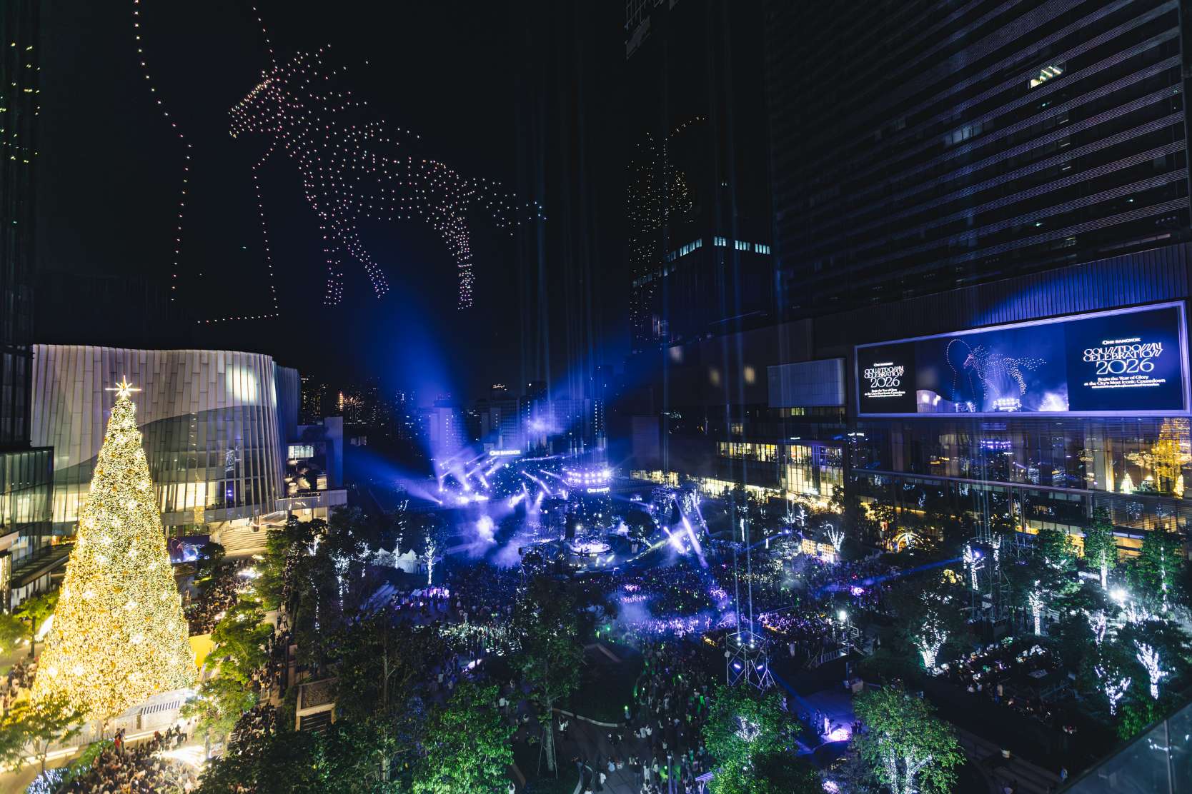 ปิดท้ายอย่างสมบูรณ์แบบในช่วงเวลานับถอยหลัง “The Rise of ONE” ด้วยการแสดงโดรนแปรขบวน สุดตระการตาสื่อถึง “ม้าไฟ” สัญลักษณ์แห่งปี 2569 ก่อนที่ท้องฟ้าใจกลางกรุงเทพฯ จะสว่างไสวไปกับการแสดงพลุสุดตระการตา เป็นการเปิดศักราชใหม่ที่ยิ่งใหญ่สุดประทับใจให้กับทุกคน