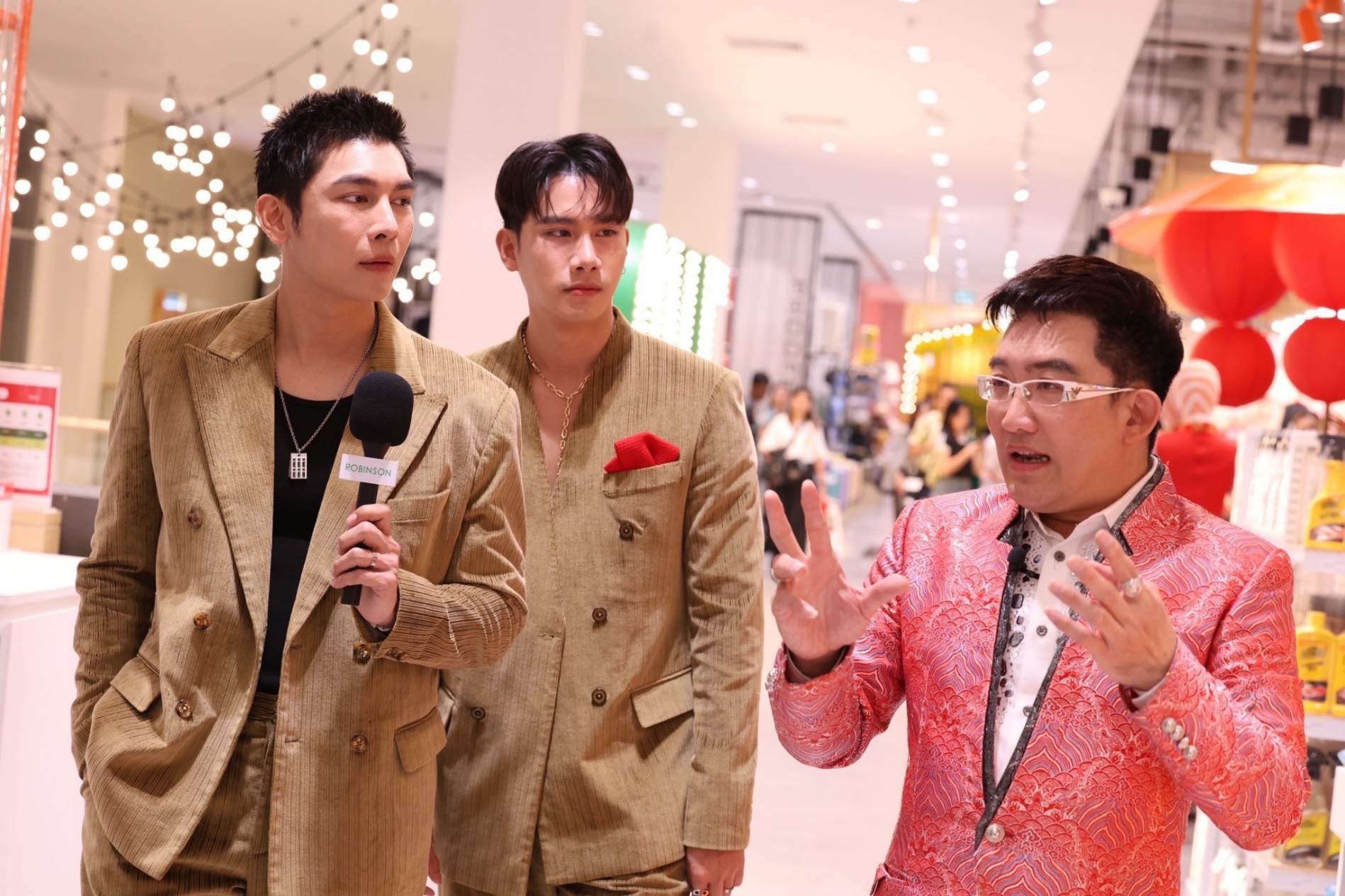 ด้าน หนุ่มมิว และหนุ่มตุลย์ กล่าวเพิ่มเติมและฝากเชิญชวนเอฟซีมาช้อปเสริมเฮงที่ห้างโรบินสันว่า “ก่อนอื่นต้องขอบคุณห้างโรบินสันมาก ๆ เลยนะครับที่ชวนเราสองคนมาร่วมงาน รับคำแนะนำ และเคล็ดลับดี ๆ จาก อ.คฑา ในวันนี้ ซึ่งทุกคำแนะนำมีให้ช้อปที่ห้างโรบินสันหมดเลย แฮปปี้มาก ใครที่อยากช้อปต้อนรับเทศกาลตรุษจีนแนะนำเลยครับ และปีนี้ห้างโรบินสันยังได้ร่วมกับอาร์ตทิสชื่อดังอย่างคุณนิวเยียร์ออกแบบของพรีเมี่ยมลิมิเต็ดไอเทมต่าง ๆ ด้วยคือปังมาก เพราะส่วนตัวทั้งมิวและตุลเป็นเอฟซีคุณ นิวเยียร์อยู่แล้ว เพราะฉะนั้นเราจะไม่พลาดแน่นอน แถมโปรโมชันของห้างก็ดีขานรับ Easy e-Receipt และยังมีเกมแจกของรางวัลและกิจกรรมสนุก ๆ อีกต่างหาก คอนเฟิร์มว่าเอฟซีต้องแฮปปี้เหมือนเราทั้งคู่แน่นอนครับ”