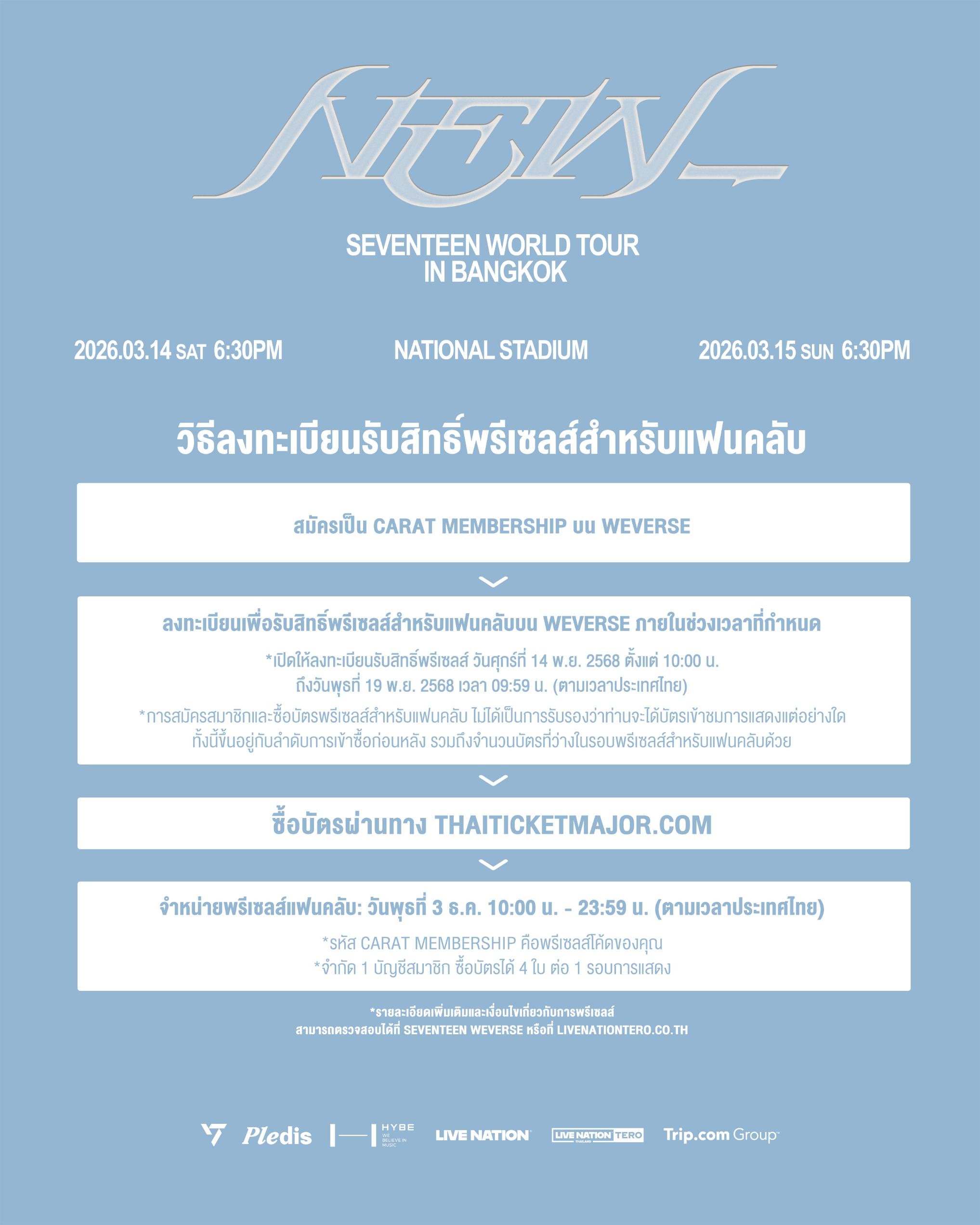 แบบใหม่ แบบศุภฯ ‘SEVENTEEN’ ชวนกะรัตไทยมาฟินไปกับเวิลด์ทัวร์ครั้งใหม่ SEVENTEEN WORLD TOUR [NEW_] IN BANGKOK 14 – 15 มีนาคม 2569 ที่สนามศุภชลาศัย