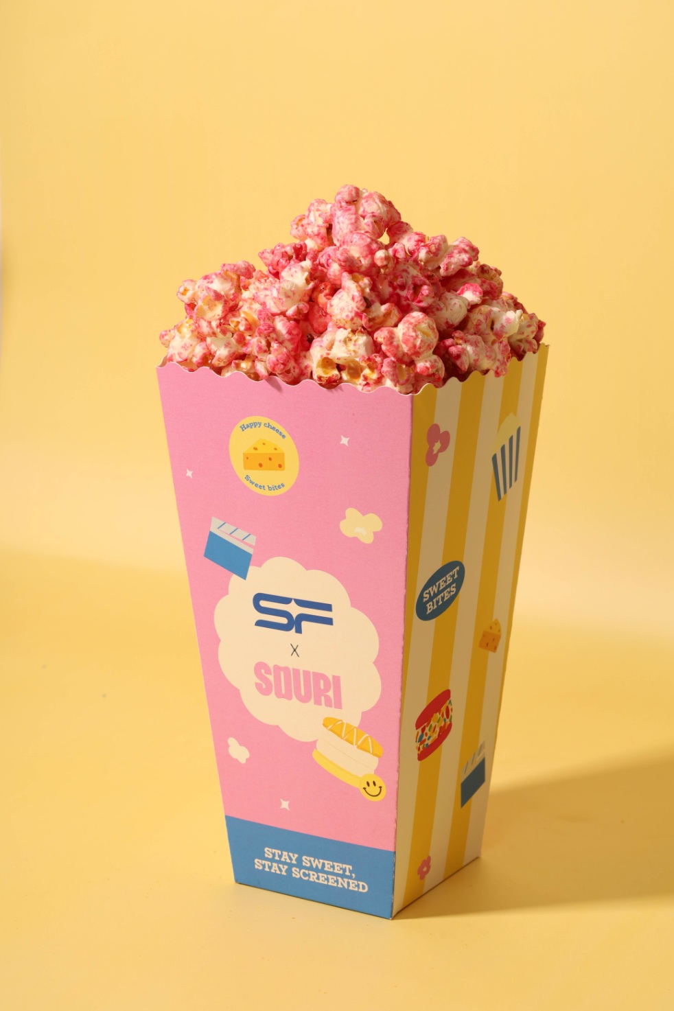 คุณพิมสิริ ทองร่มโพธิ์ ผู้อำนวยการฝ่ายการตลาด บริษัท เอส เอฟ คอร์ปอเรชั่น จำกัด (มหาชน) กล่าวว่า “เอส เอฟ ให้ความสำคัญกับการมอบความสุขและประสบการณ์ที่ดีที่สุดให้กับลูกค้า โดยร่วมกับพาร์ทเนอร์ เพื่อยกระดับการให้บริการและสร้างสรรค์ประสบการณ์ใหม่ๆ อยู่เสมอ ล่าสุดเราได้ร่วมมือกับ SOURI แบรนด์ขนมหวานชื่อดังที่ได้รับความนิยมและเป็นกระแสในโซเชียลมีเดียอยู่เสมอ ร่วมกันสร้างสรรค์สองเมนูพิเศษที่นำมาจำหน่ายในช่วงปลายปี ต้อนรับเทศกาลแห่งความสุขของทุกคน โดย เอส เอฟ ได้พัฒนา “ป๊อปคอร์น รส BIRTHDAY CAKE” ที่ได้แรงบันดาลใจมาจาก Birthday Cake Fatcaron หนึ่งในแฟตการองรสชาติ Signature ที่ขายดีที่สุดของ SOURI กลายเป็น ป๊อปคอร์นสีชมพูรสชาติหอมหวาน ที่ยังคงความสดใหม่ อร่อยกรอบเต็มเมล็ดตามแบบฉบับป๊อปคอร์นจาก เอส เอฟ พร้อมวางจำหน่ายเป็นรสชาติพิเศษ ตั้งแต่วันที่ 14 พฤศจิกายนนี้ เป็นต้นไป ที่โรงภาพยนตร์ในเครือ เอส เอฟ ทุกสาขาค่ะ นอกจากนี้ ทาง SOURI ยังได้พัฒนาแฟตการอง รสชาติพิเศษจากป๊อปคอร์นของ เอส เอฟ มาจำหน่ายพร้อมกัน ซึ่งนอกจากการคอลแลปส์รสชาติแล้ว เอส เอฟ และ SOURI ยังมีการทำออนไลน์คอนเทนต์ร่วมกัน เพื่อสร้างสีสันและความสนุกให้กับลูกค้าของเราด้วย ฝากทุกคนติดตามทางโซเชียลมีเดีย SF Cinema และ SOURI ด้วยนะคะ”