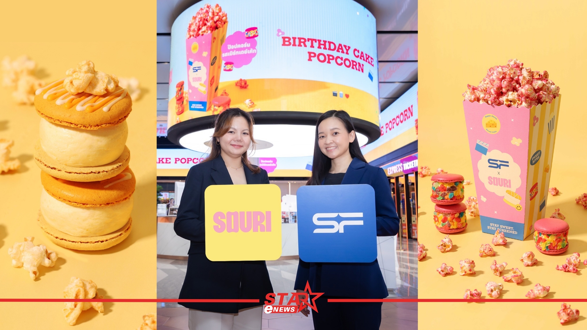 บริษัท เอส เอฟ คอร์ปอเรชั่น จำกัด (มหาชน) ผู้ประกอบธุรกิจโรงภาพยนตร์ชั้นนำของประเทศไทย ร่วมกับ บริษัท ริชสไมล์ จำกัด หรือ “SOURI (ซูรี)” แบรนด์ขนมหวานและแฟตการองชื่อดัง คอลแลปส์ครั้งใหญ่ เปิดตัวดูโอความอร่อย ต้อนรับเทศกาลแห่งความสุขกับ “Birthday Cake Popcorn (ป๊อปคอร์น รสเบิร์ทเดย์เค้ก)” ป๊อปคอร์นพรีเมียมเม็ดโตจาก เอส เอฟ ผสานความหอมหวาน ที่ได้รับแรงบันดาลใจจาก Birthday Cake Fatcaron (เบิร์ทเดย์เค้ก แฟตการอง) ของ SOURI และ “Cheese Pro Max Plus Fatcaron (แฟตการอง รสชีสโปรแม็กซ์พลัส) แฟตการองสูตรพิเศษ ที่สร้างสรรค์จากรสชาติป๊อปคอร์นของ เอส เอฟ จำหน่ายให้สัมผัสความอร่อยพร้อมกันตั้งแต่วันที่ 14 พฤศจิกายน 2568 เป็นต้นไป โดย Birthday Cake Popcorn จะจำหน่ายที่โรงภาพยนตร์ในเครือ เอส เอฟ ทุกสาขาทั่วประเทศ รวมทั้ง ช่องทางเดลิเวอรี่ที่ให้บริการ และ Cheese Pro Max Plus Fatcaron จะจำหน่ายที่ร้าน SOURI และช่องทางเดลิเวอรี่ทุกสาขาทั่วประเทศ