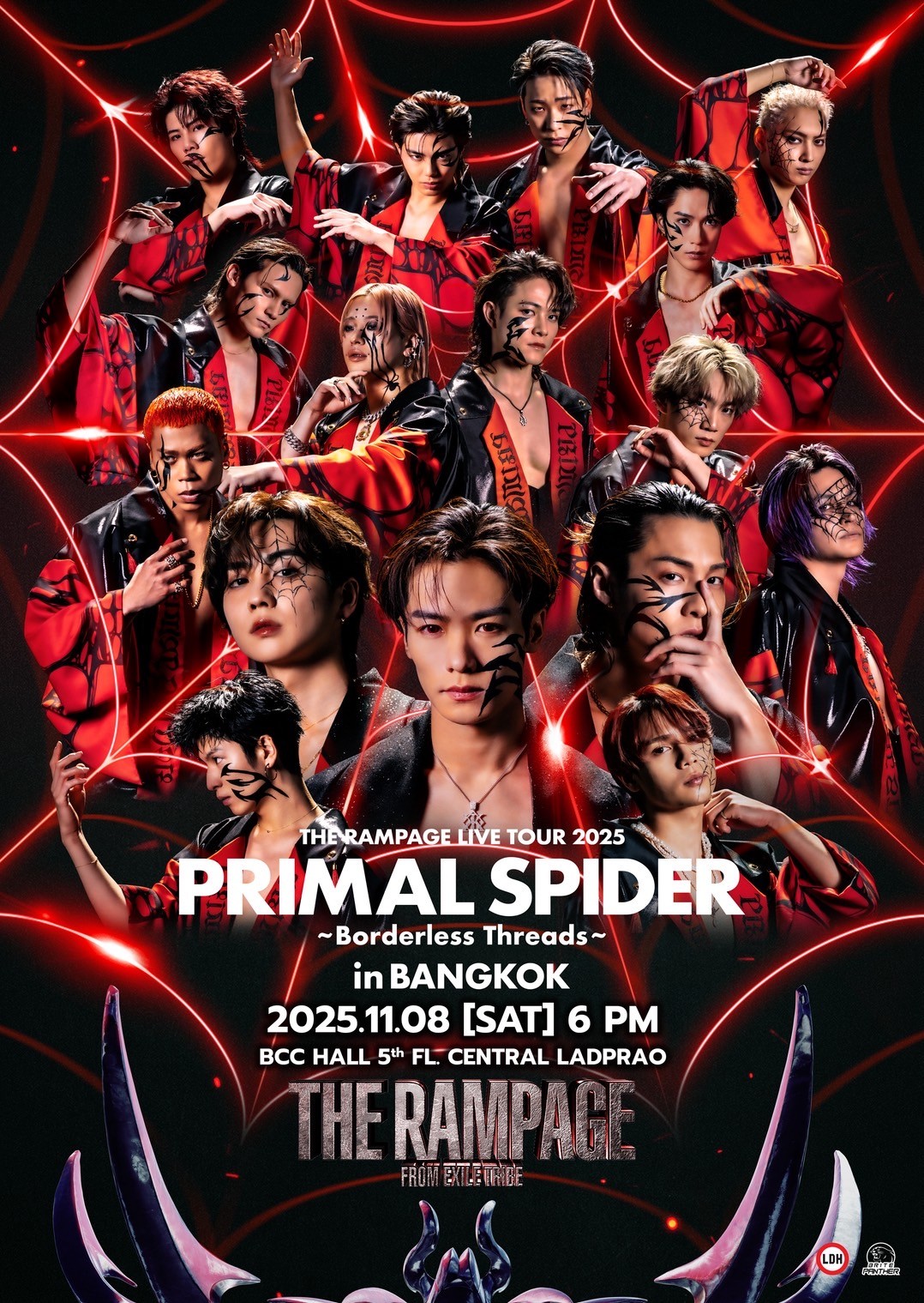 คอนเสิร์ต “THE RAMPAGE LIVE TOUR 2025 PRIMAL SPIDER BORDERLESS THREADS IN BANGKOK” ครั้งนี้ ถือเป็นโอกาสสำคัญที่แฟน ๆ ชาวไทยจะได้สัมผัสประสบการณ์คอนเสิร์ตแรกในประเทศไทย ที่ไม่เหมือนใครอย่างใกล้ชิด เตรียมพบกับการแสดงที่อัดแน่นด้วยพลัง ความสามารถ และความสร้างสรรค์จากสมาชิกทั้ง 16 คน พร้อมไฮไลต์สุดพิเศษ ที่จัดขึ้นมาใหม่เฉพาะที่ประเทศไทย เท่านั้น